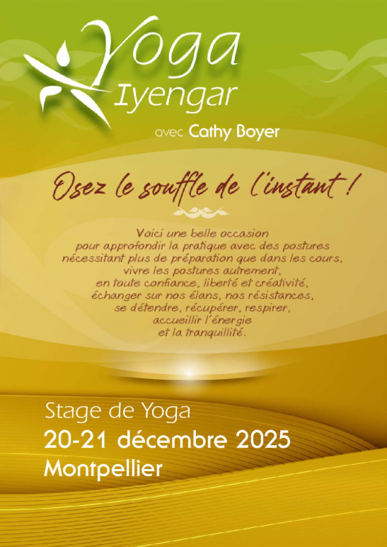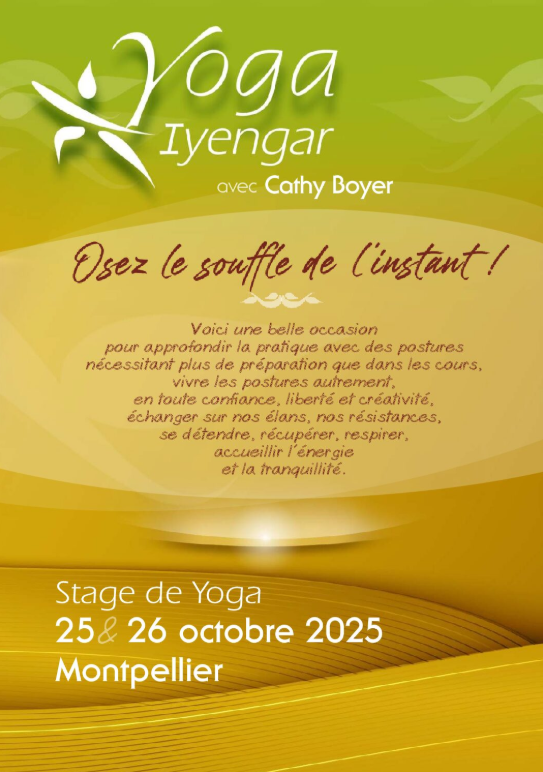 Cathy Boyer est professeur de Yoga Iyengar, basée à Montpellier, et enseigne depuis plus de 30 ans . Son approche se distingue par la précision des ajustements et l’ écoute toute particulière qu’ elle accorde aux sensations.